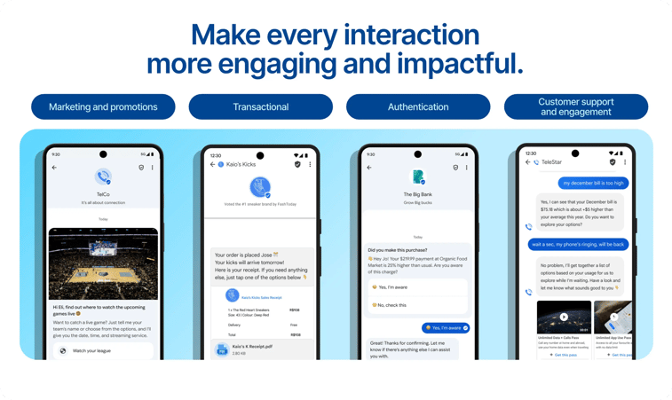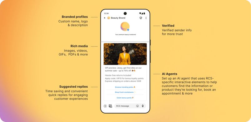 - No app download required: unlike WhatsApp, RCS works in the native messaging app - zero friction for customers