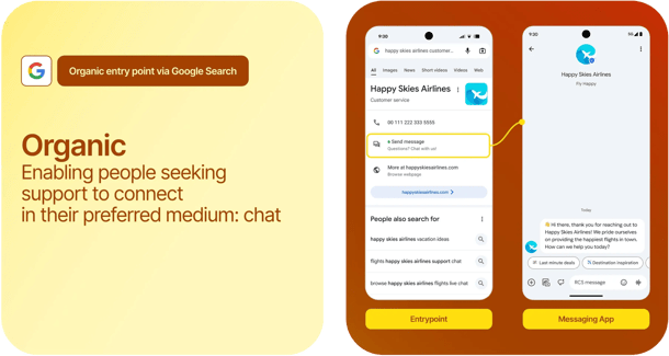 There are two ways customers can enter an RCS chat from Google Search: