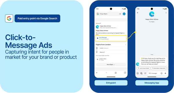 One of RCS's most compelling advantages for performance marketers is its native integration with Google Ads. Google is connecting its RCS push with the full power of Google Ad Manager - bringing conversational commerce directly into the search experience.
